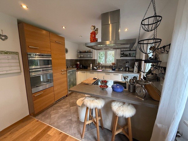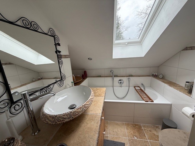 Die Immobilie verfügt über 6,5 helle Zimmer, darunter ein großzügiger Wohnbereich mit offener, moderner Einbauküche. Zwei Bäder stehen zur Verfügung; eines mit Badewanne und eines mit Dusche. Ein 1996 angebauter, sonniger Wintergarten läd zum Entspannen ein und erweitert den Wohnraum harmonisch. Das Haus ist voll unterkellert und bietet somit zusätzlichen Stauraum und Nutzfläche.